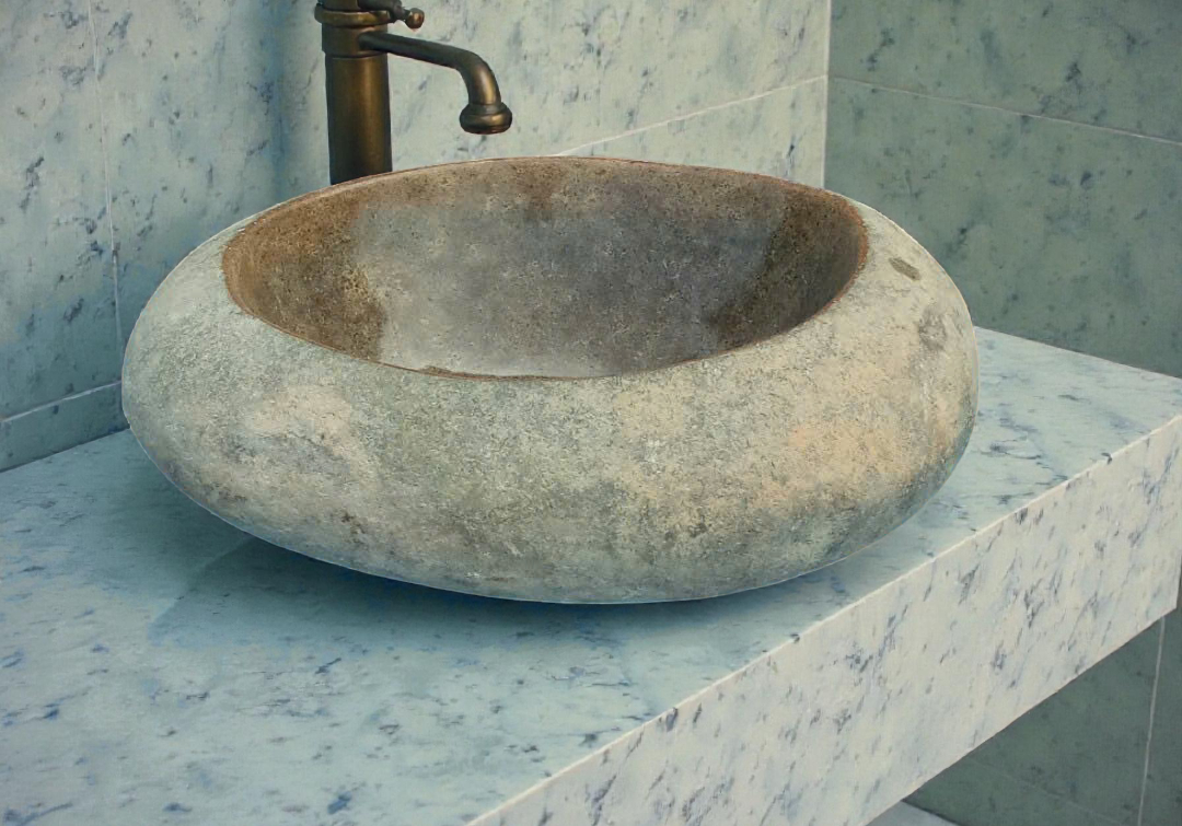 Chậu đá cuội tự nhiên là dòng chậu rửa được làm từ đá cuội nguyên khối, giữ nguyên phom tự nhiên bên ngoài và mài nhẵn lòng chậu bên trong. Dòng này rất “art”, sang – lạ – độc, hợp với những không gian muốn tạo điểm nhấn tự nhiên.
