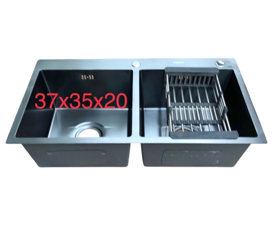 Chậu Rửa Bát 2 Hố Cân – Màu Đen 8245