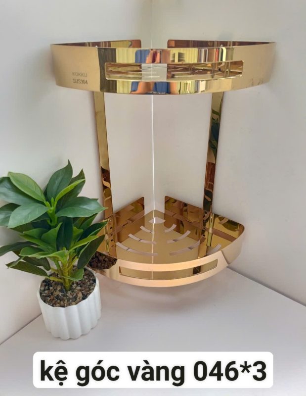Kệ Góc Vàng Inox 304 Mã 046-3 là phụ kiện phòng tắm được sử dụng rất phổ biến, giúp tận dụng góc tường, sắp xếp đồ dùng gọn gàng và nâng tầm thẩm mỹ cho không gian.