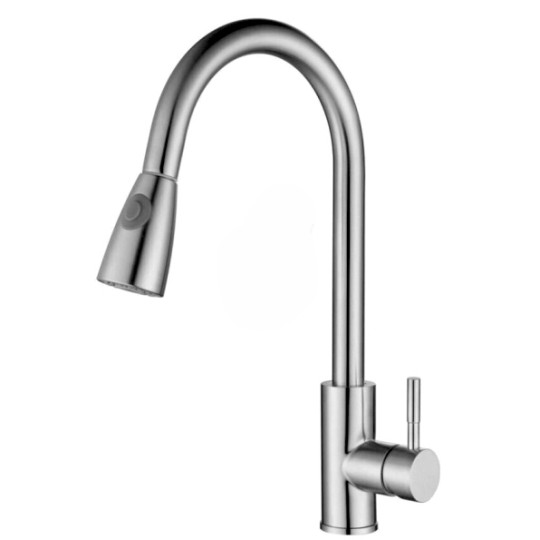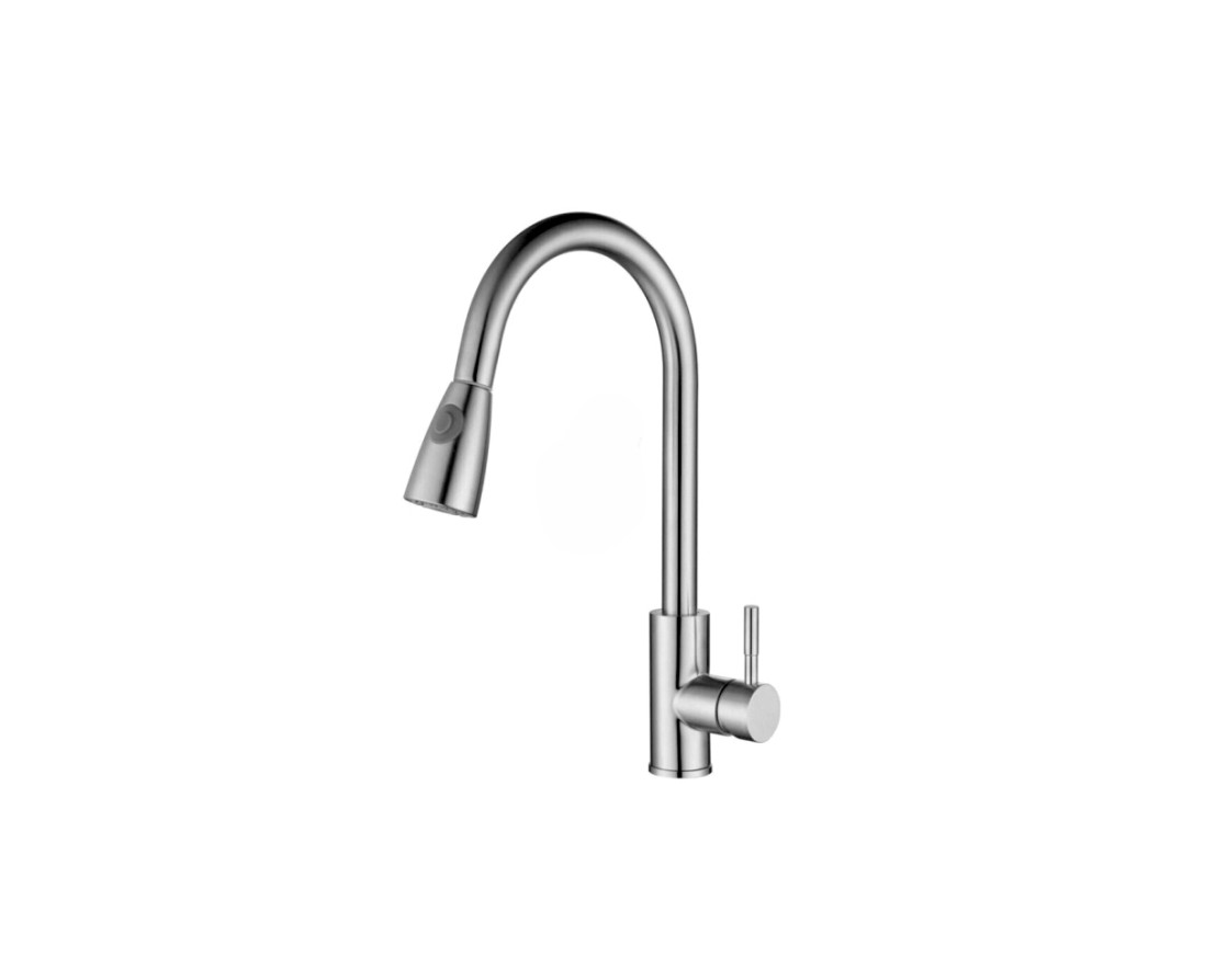 Lớp mạ chrome bóng sang trọng, bền màu, tạo điểm nhấn mạnh mẽ cho không gian bếp. Thân vòi làm từ inox 304, đầm tay và chắc chắn, hạn chế han gỉ tối đa.